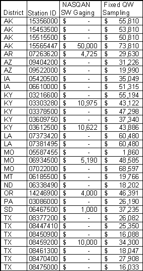 (NASQAN) status and funding for FY 2001. Details of NASQAN station operation