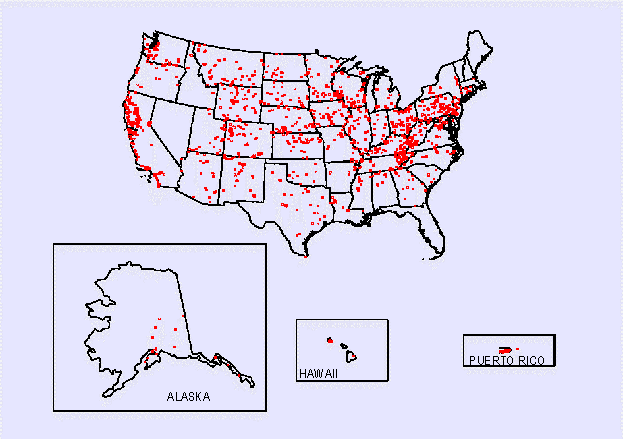 Figure 1.--Locations of U.S. Geological Survey streamflow gaging stations for which historical daily-value suspended-sediment and ancillary data are available through Water Year 1995.