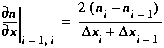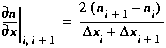∂n/∂x, at the center of segment i. Using a