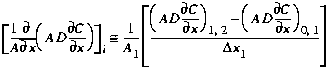 difference approximation for ∂C/∂x,